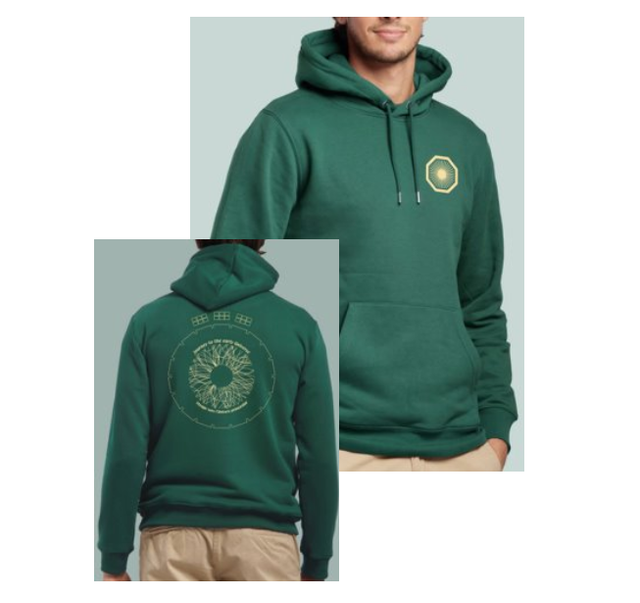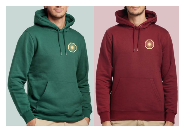 Premium hoodie made from 80% OCS-certified organic cotton and 20% recycled polyester. Soft, smooth touch for everyday comfort with lined hood, kangaroo pocket, and double-stitched hems. Available in Bottle Green and Bordeaux, sizes XS–XXL.